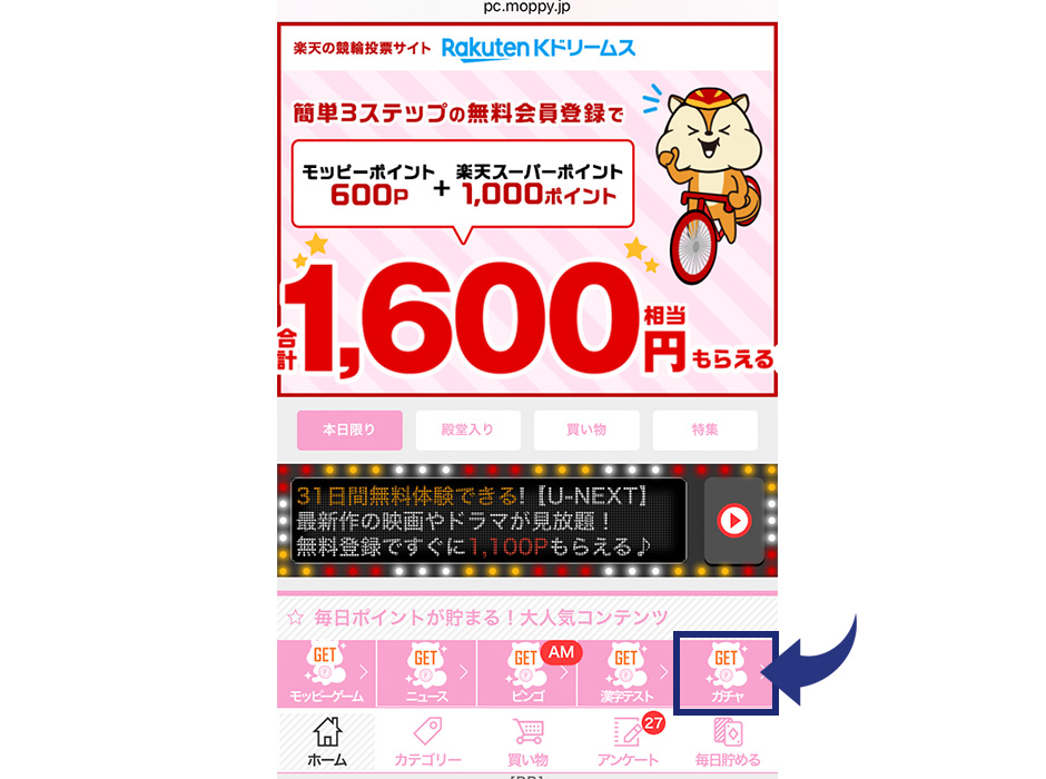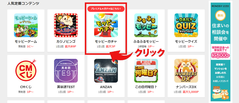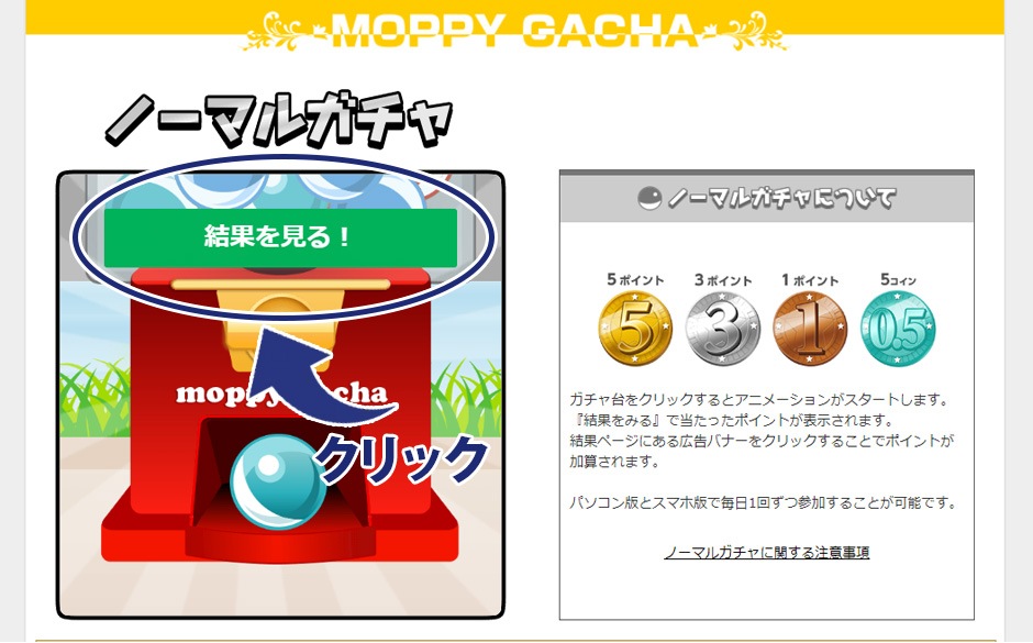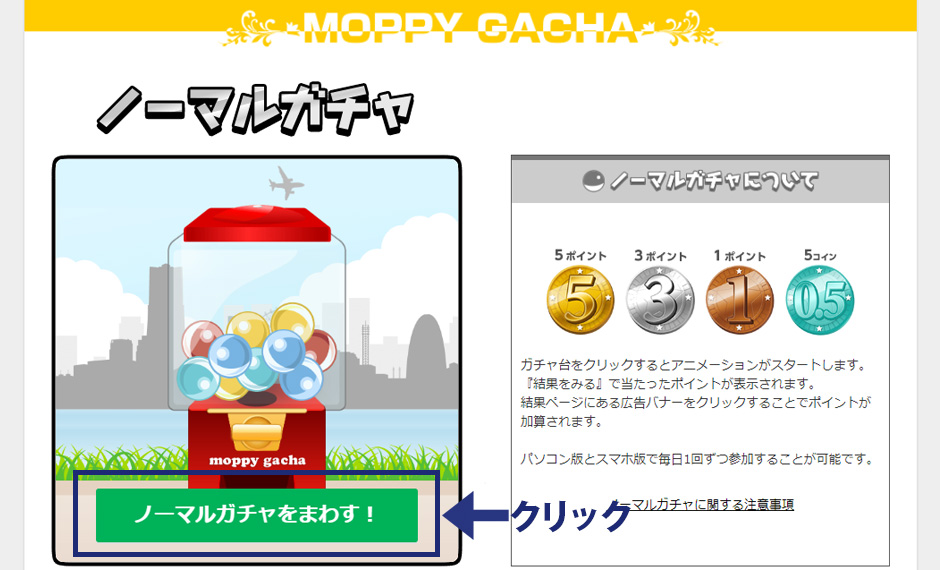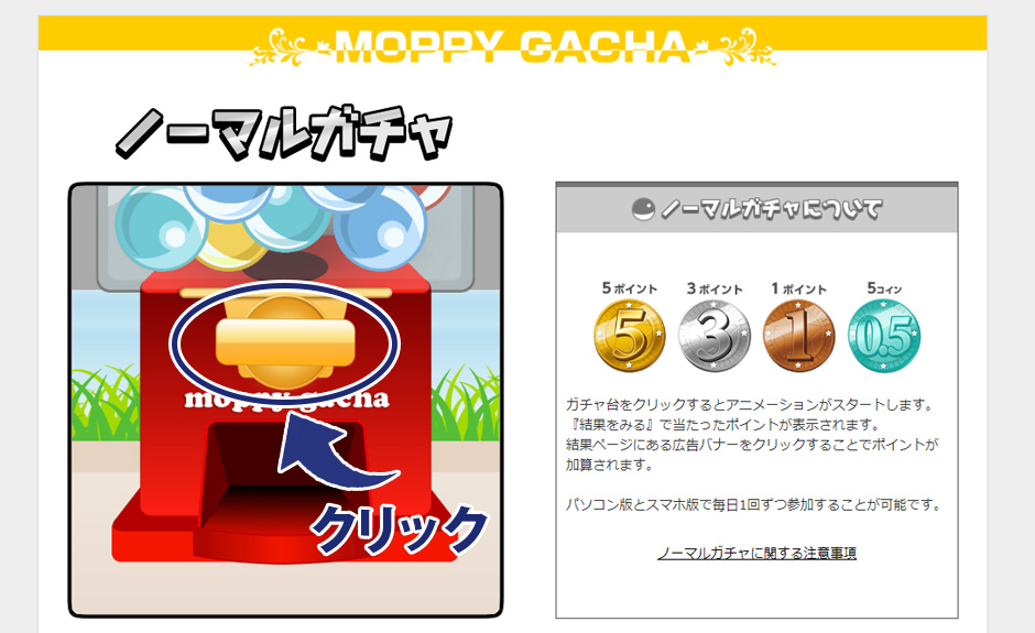 パソコン版モッピーガチャの参加方法