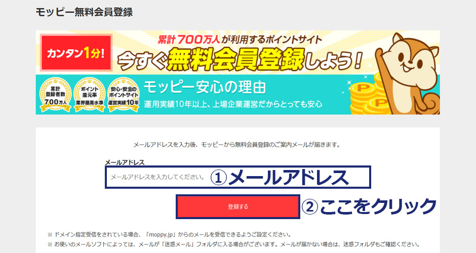 モッピーの登録のしかた