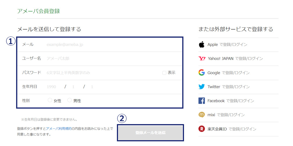 を入力して「登録メールを送信」をクリックします。