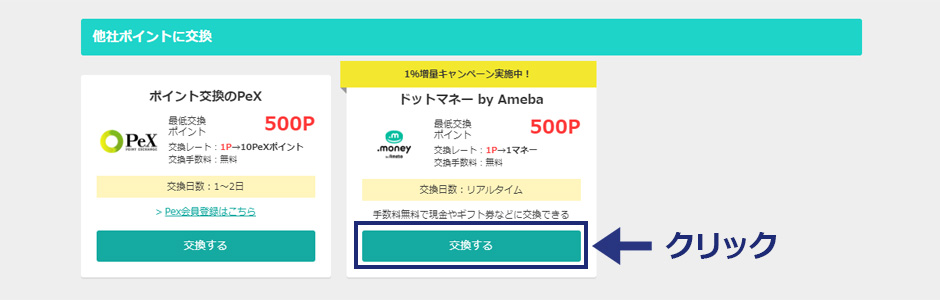 ドットマネーに交換してみる