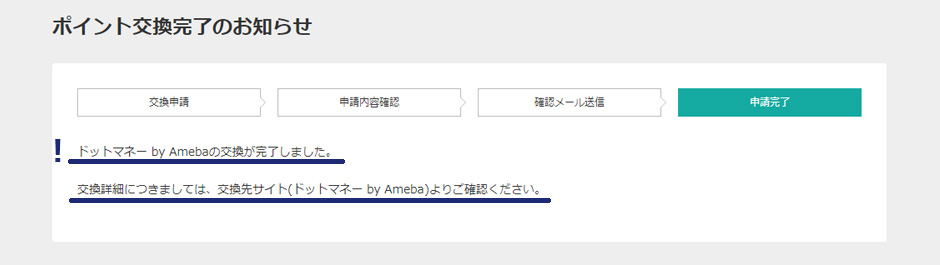 これでポイント交換完了です!本当にドットマネーに交換されたのか、ドットマネーのサイトを開いて確認してみましょう。
